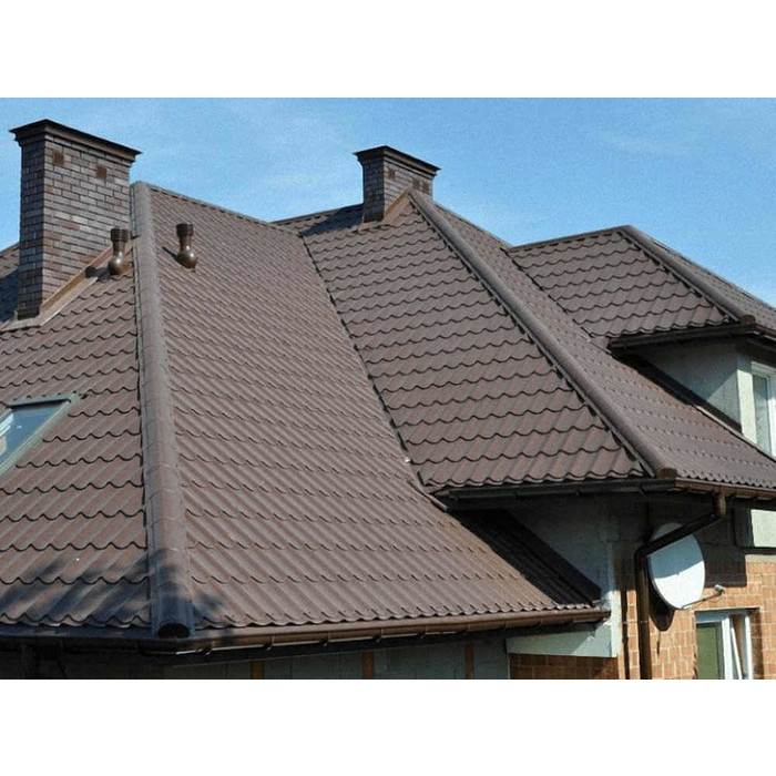 Металлочерепица Grand Line Kamea (Камея) 0,45 Полиэстер RR 32 Темно-коричневый