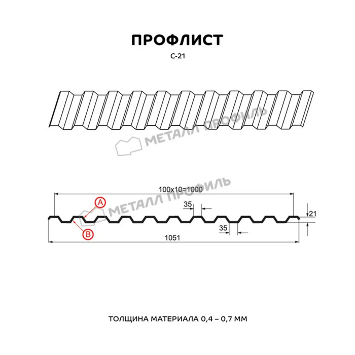 Профлист Металл Профиль С-21 0.35 и менее Цинк Бесцветный