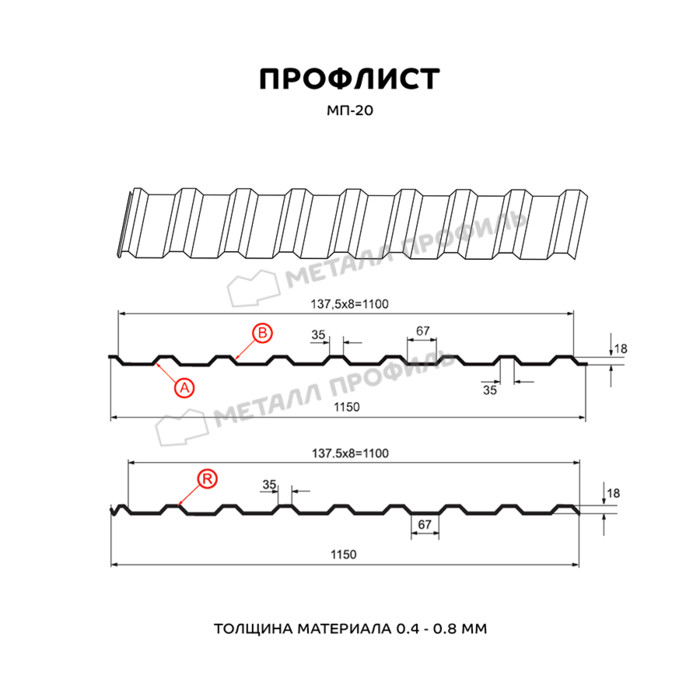 Профлист Металл Профиль МП-20 0,5 NormanMP RAL 3005 Красное вино | B